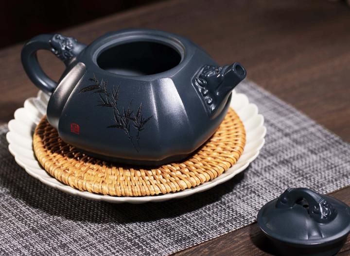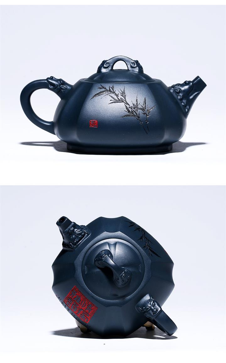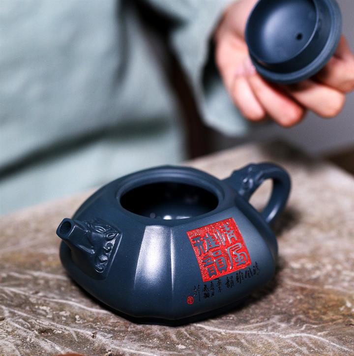 手工紫砂壺證書全陳腐天青泥吉祥金蓮pot3968