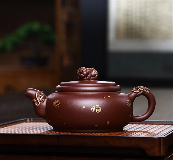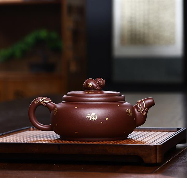 手工紫砂壺證書原礦石紅福伴心經POT4030