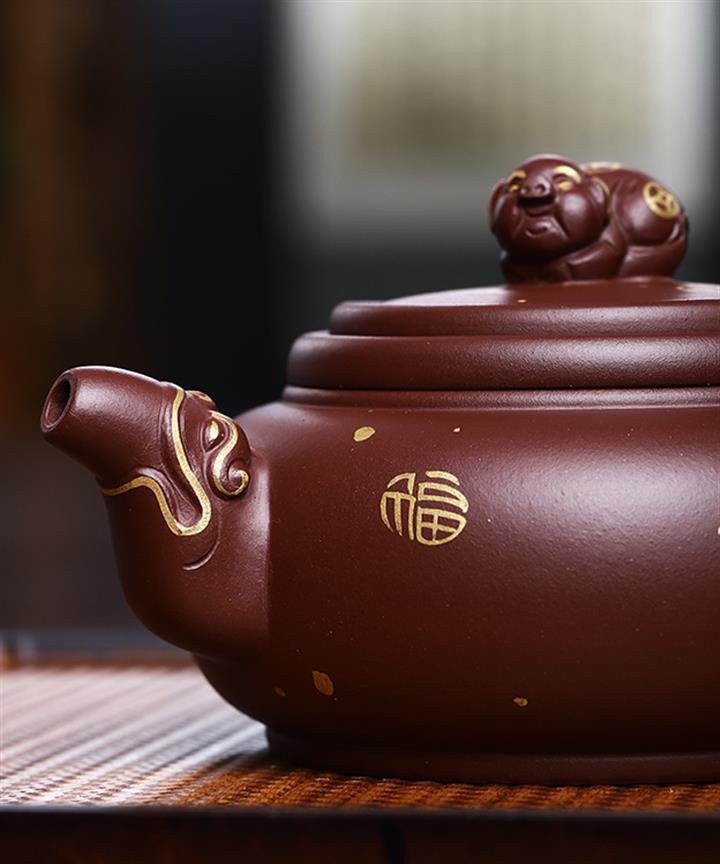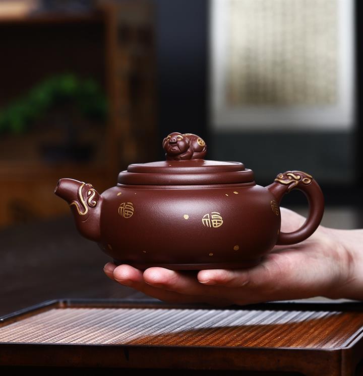 手工紫砂壺證書全陳腐底槽清金豬慶春POT4055