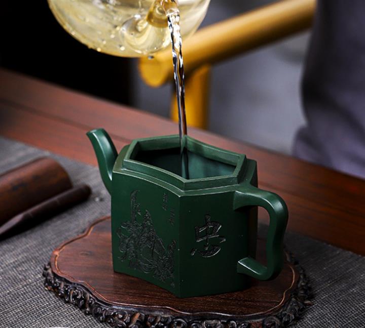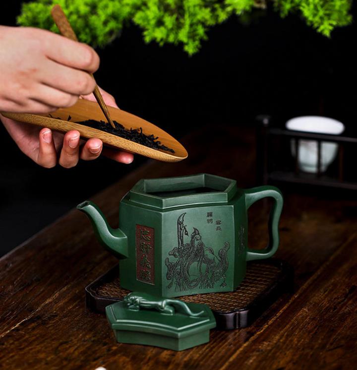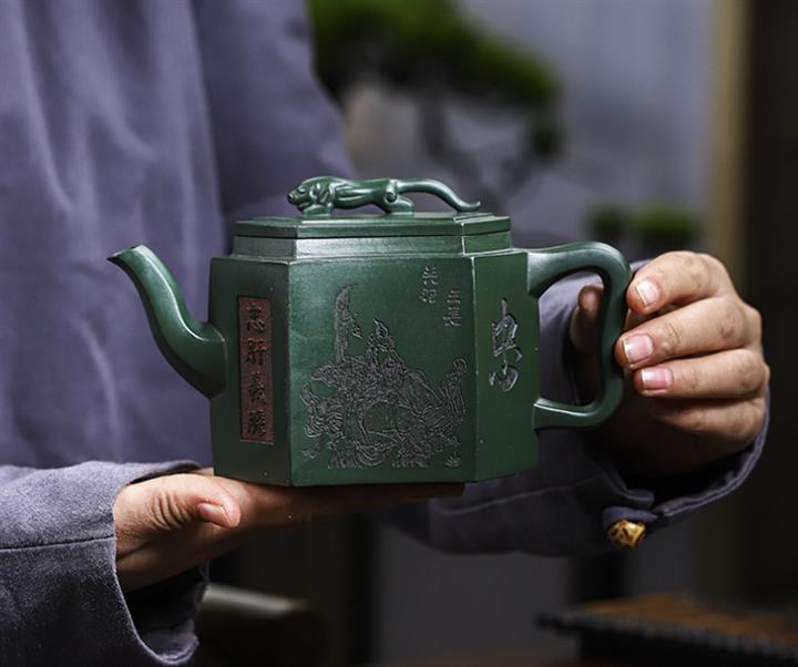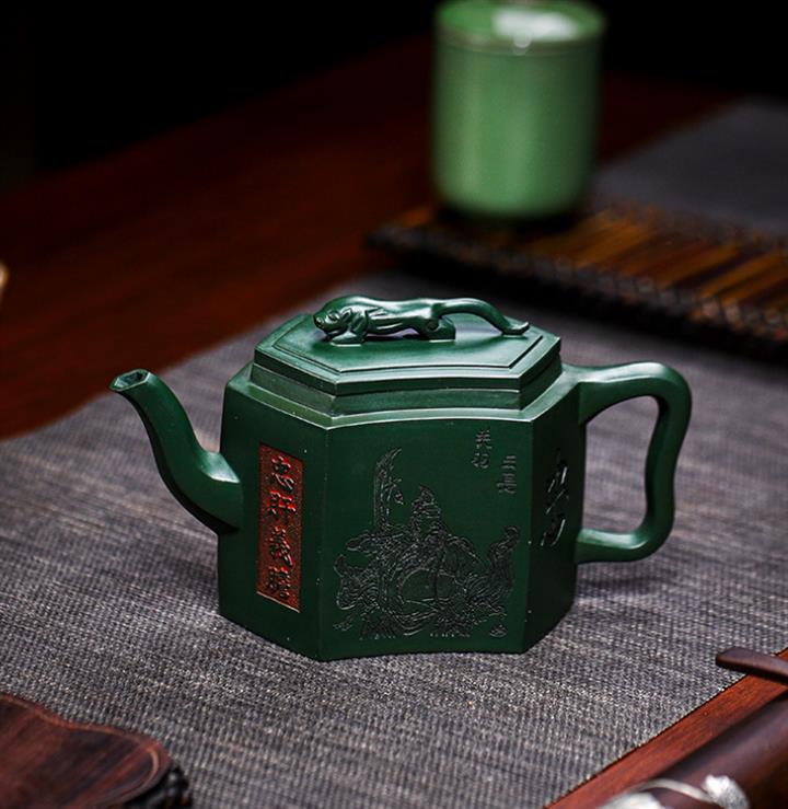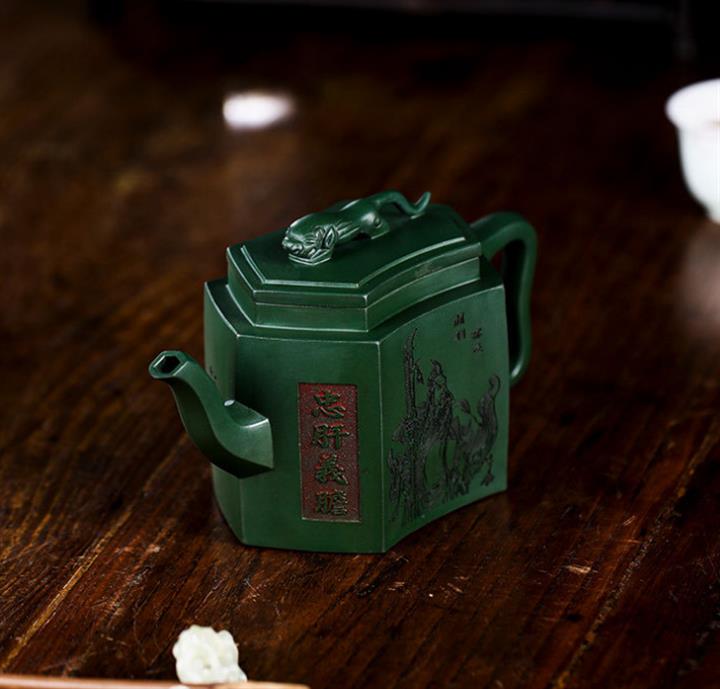全手工紫砂壺陳腐翡翠綠泥忠肝義膽POT4052