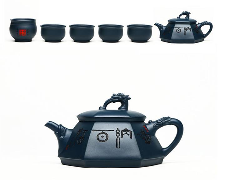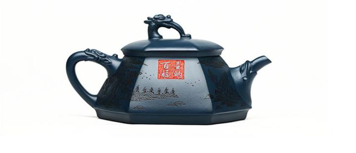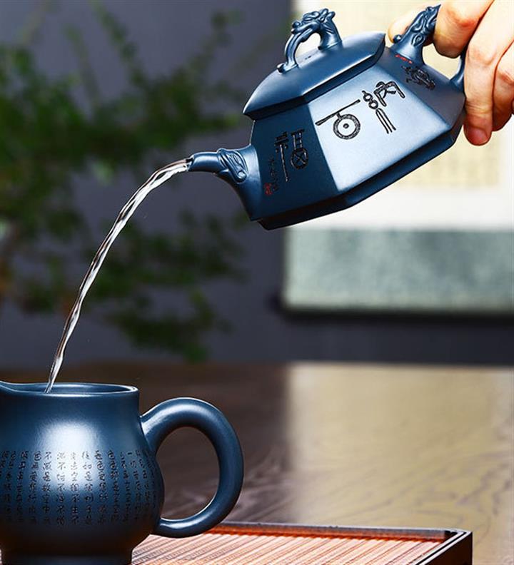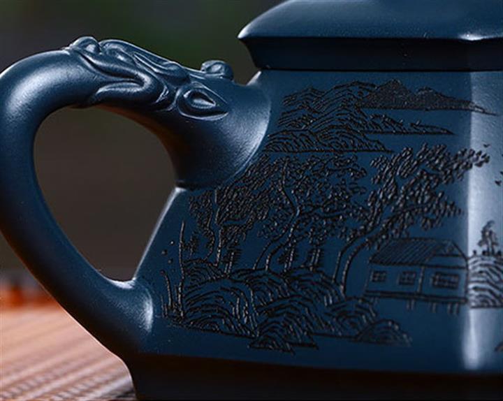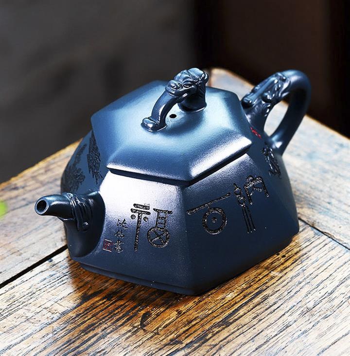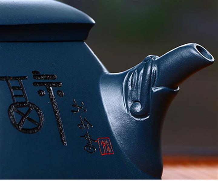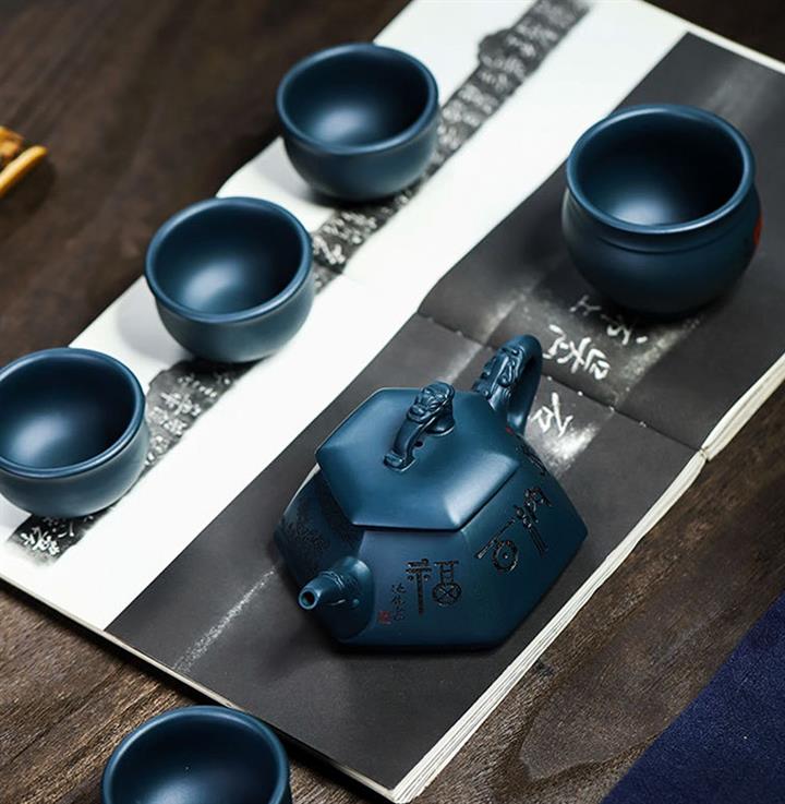 手工紫砂壺證書全陳腐天青泥吉祥金蓮pot3968