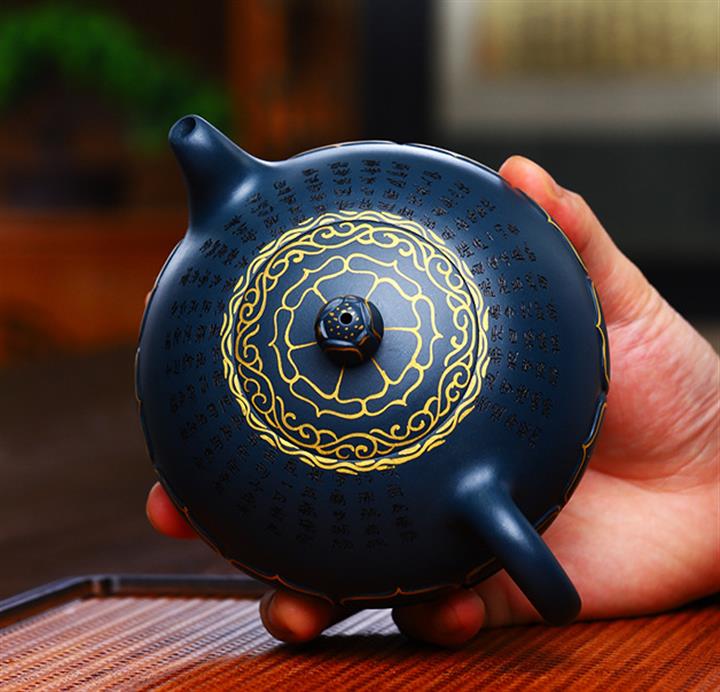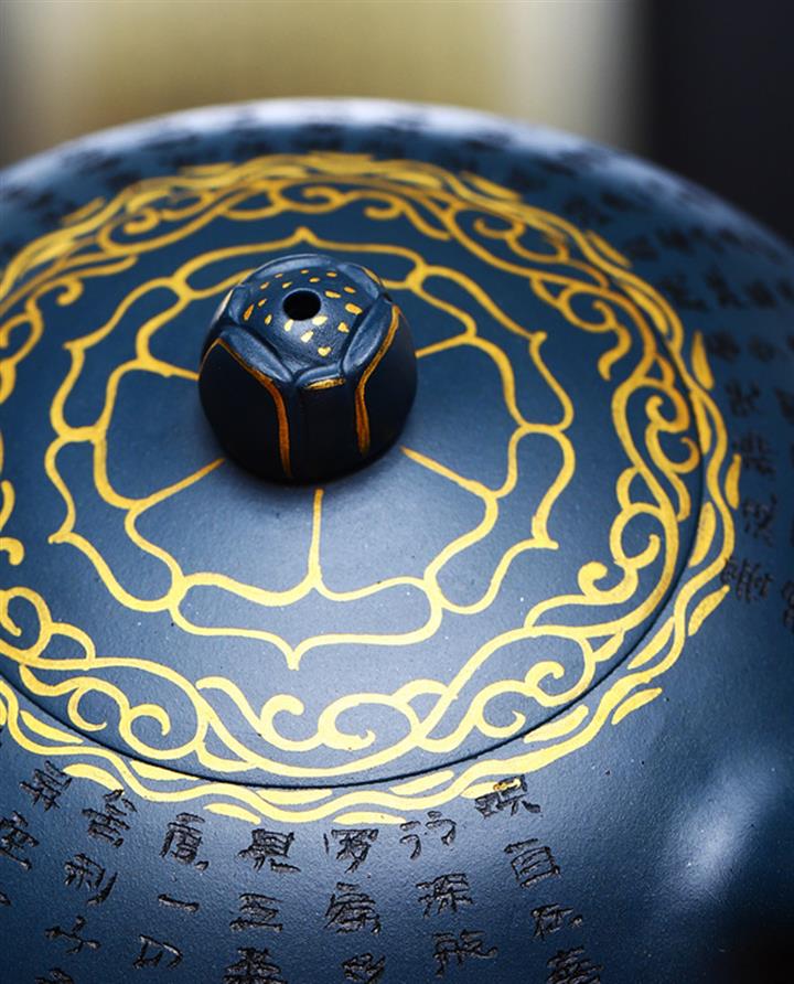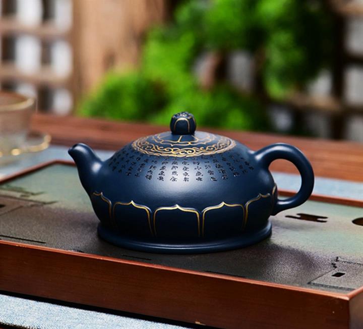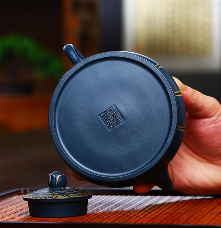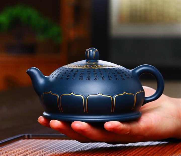 手工紫砂壺證書全陳腐天青泥吉祥金蓮pot3968