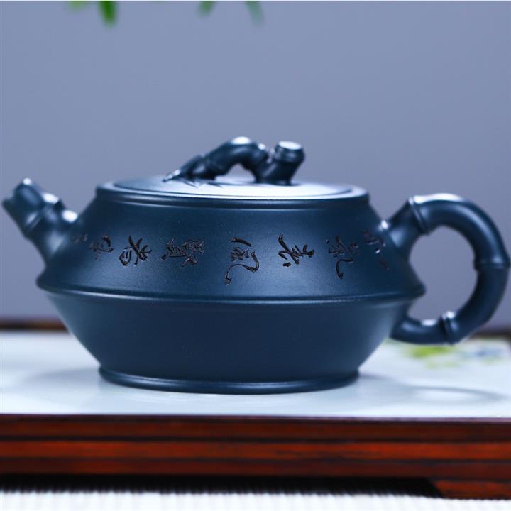 手工紫砂壺證書全陳腐黑絞泥六方黑豹pot3894