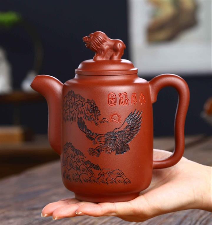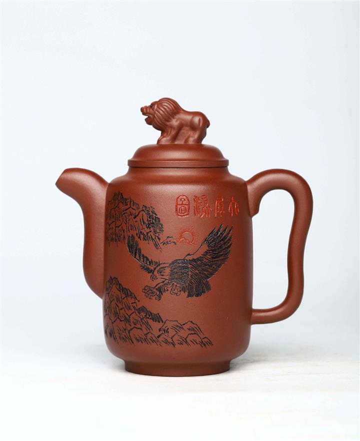 原礦老紫泥八駿圖壺 手工紫砂壺證書全 pot3957