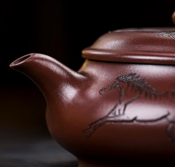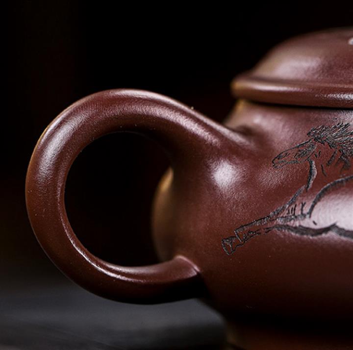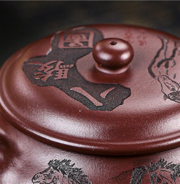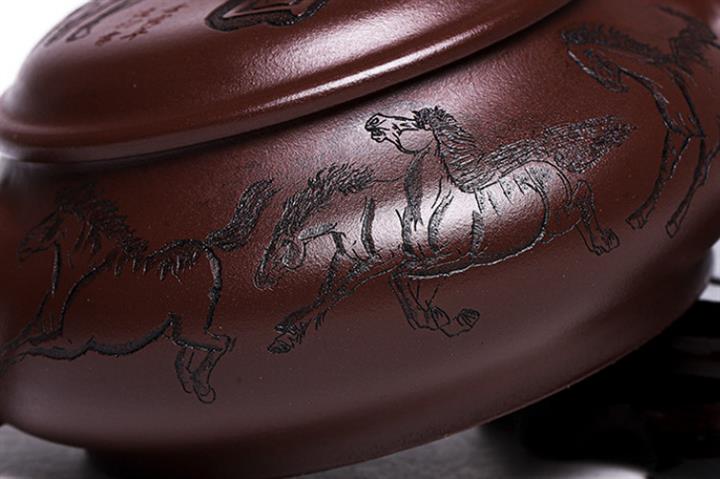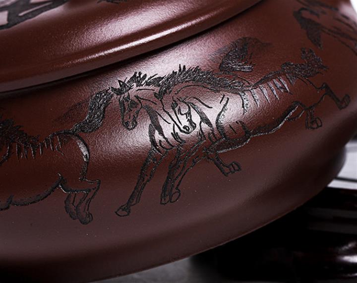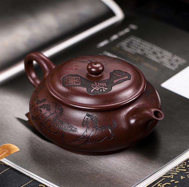 原礦老紫泥八駿圖壺 手工紫砂壺證書全 pot3957