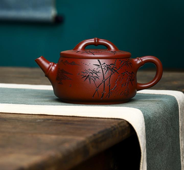 手工紫砂壺證書原礦紫血砂一葉知秋pot3799