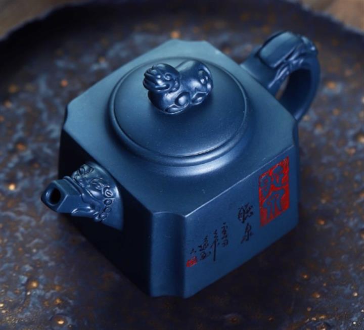 手工紫砂壺證書全陳腐黑絞泥六方黑豹pot3894