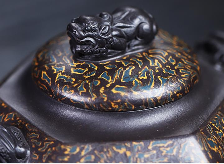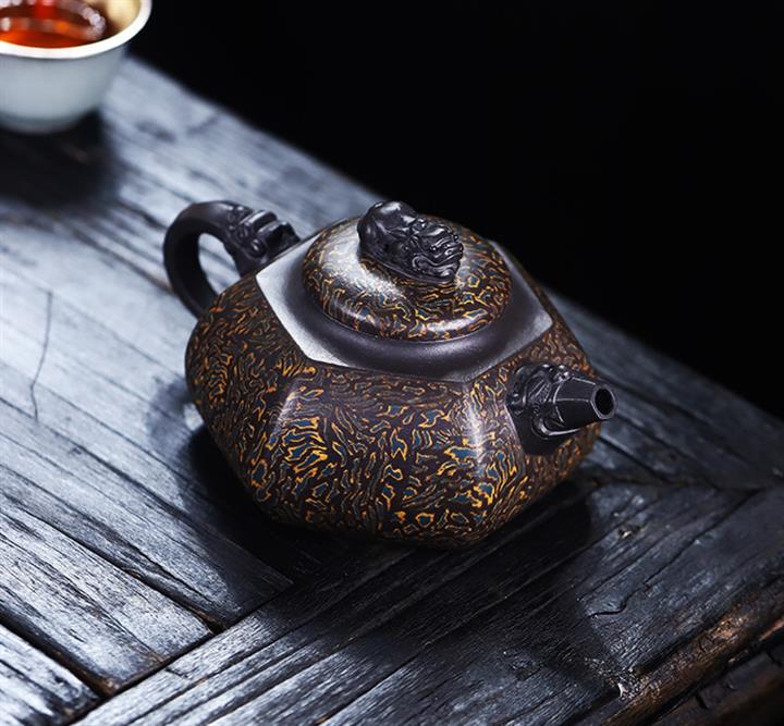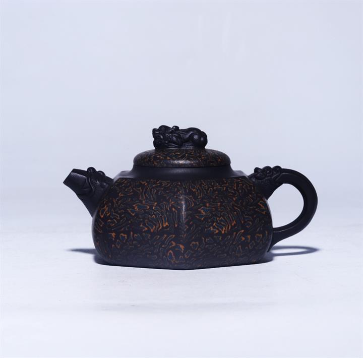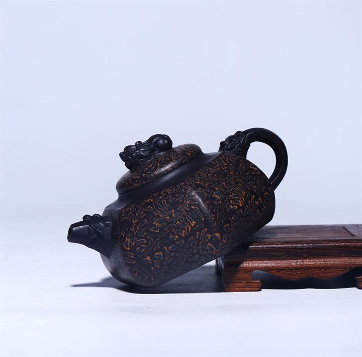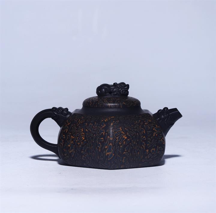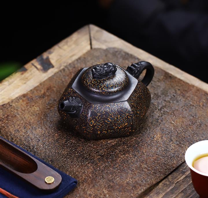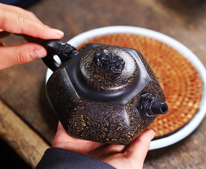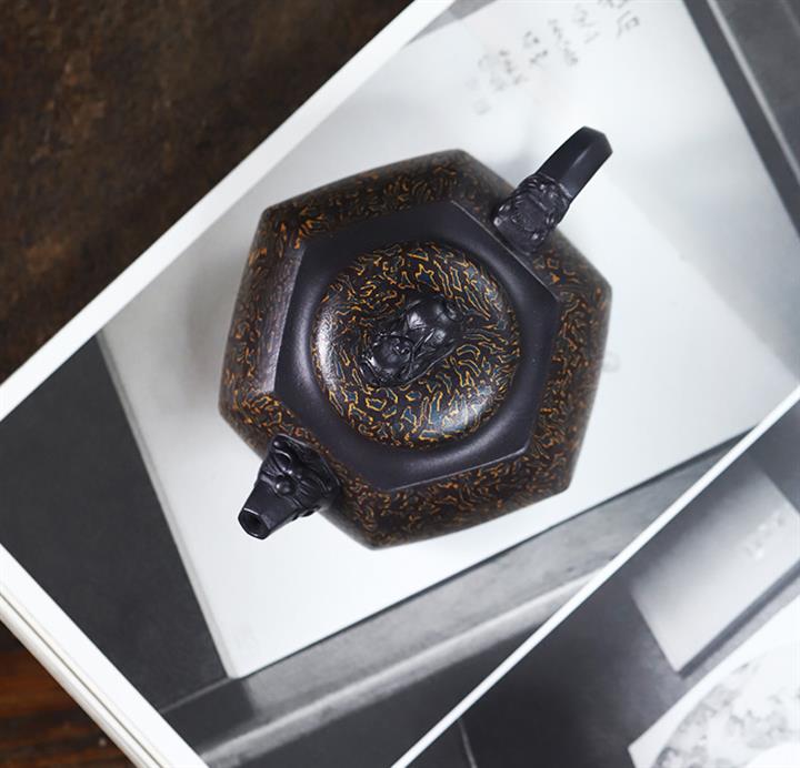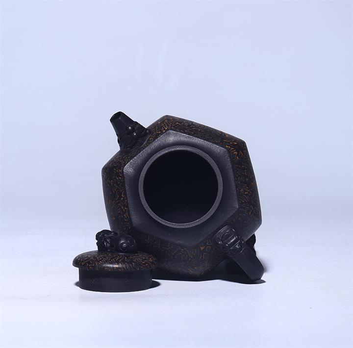 手工紫砂壺證書全陳腐黑絞泥六方黑豹pot3894