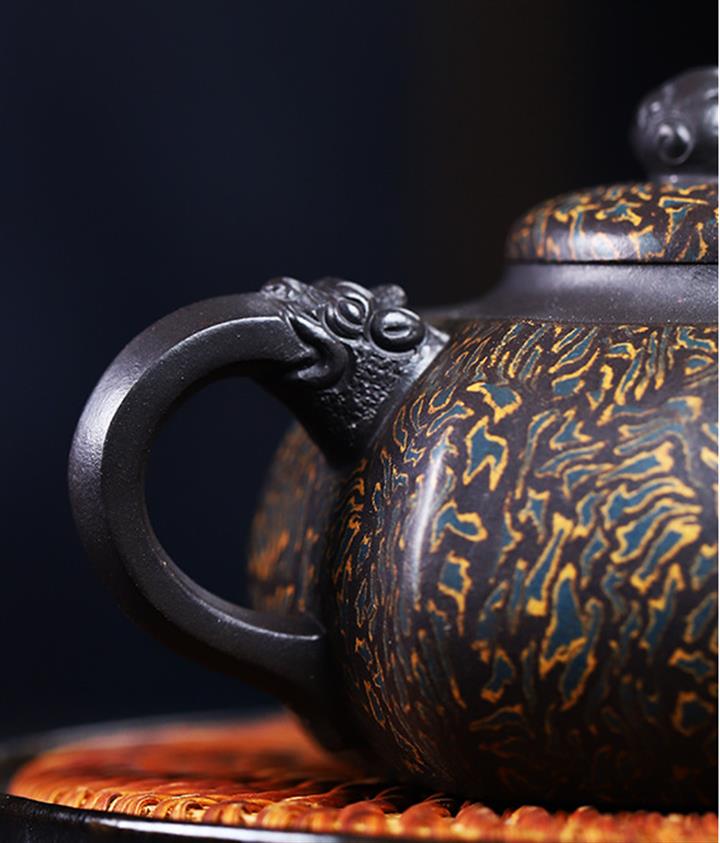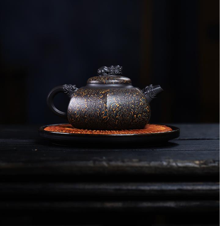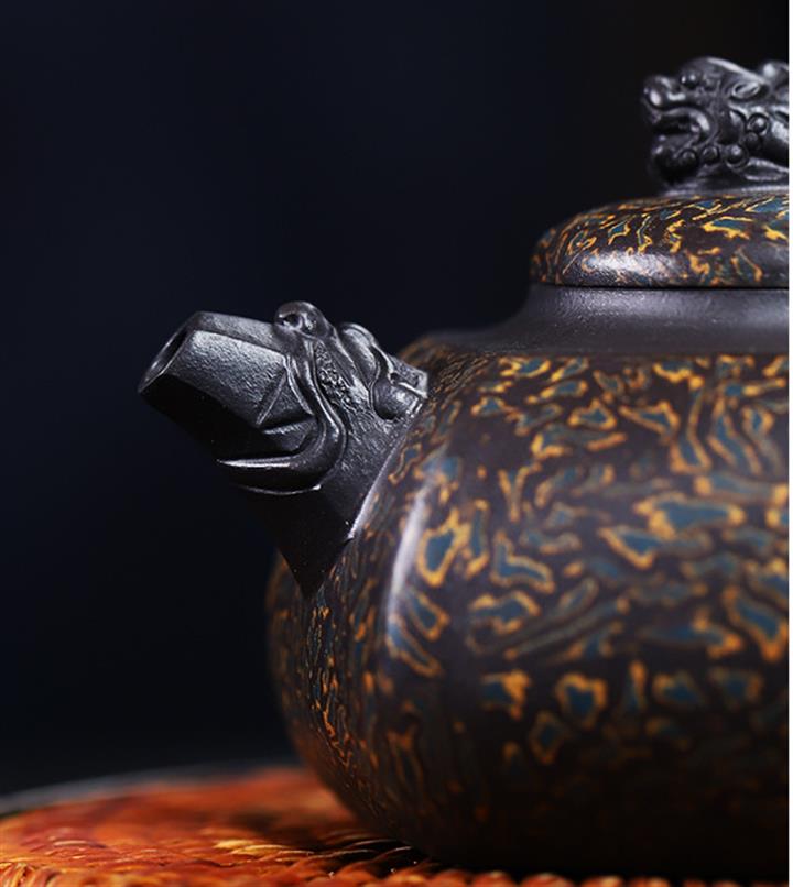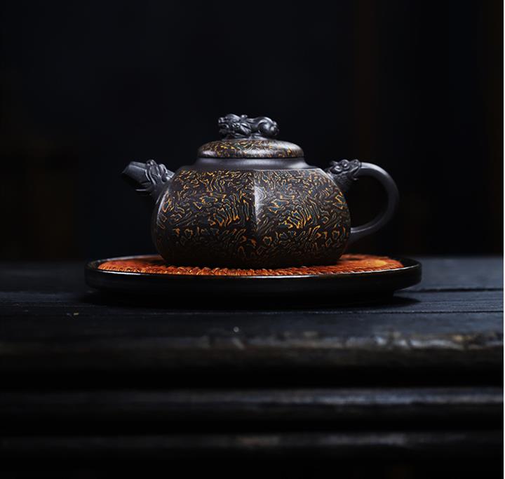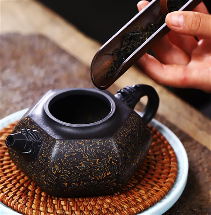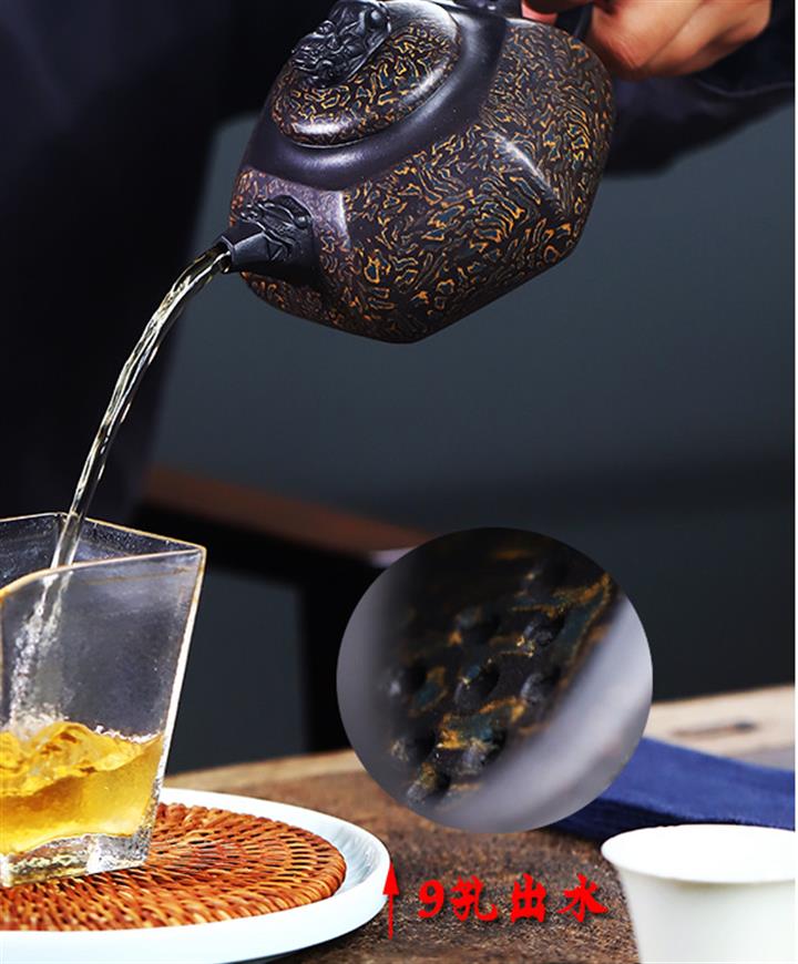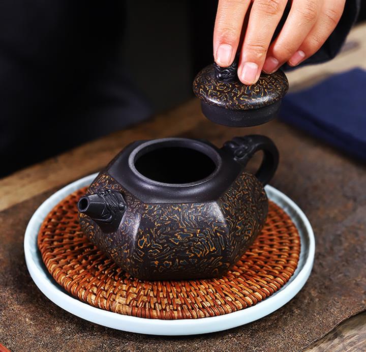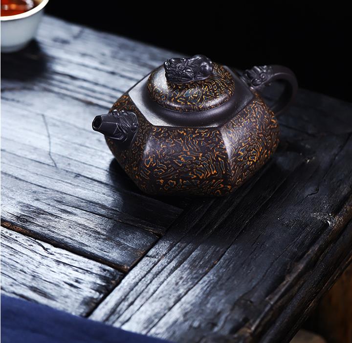 手工紫砂壺證書全陳腐黑絞泥六方黑豹pot3894