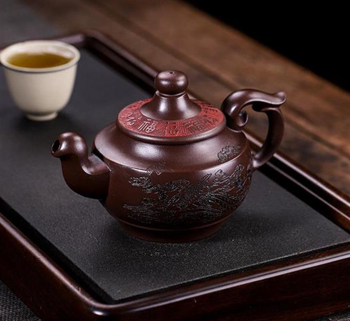 手工紫砂壺證書雙鳳賜福原礦老紫泥POT3633