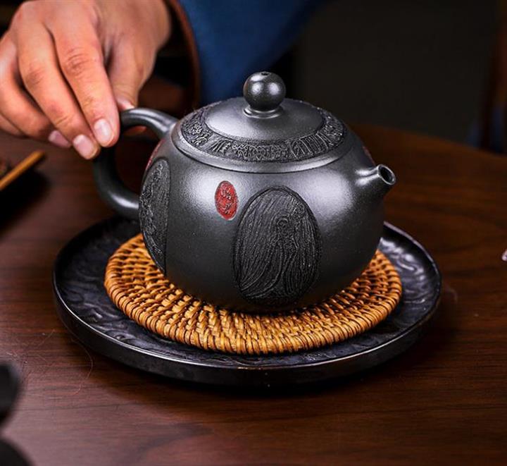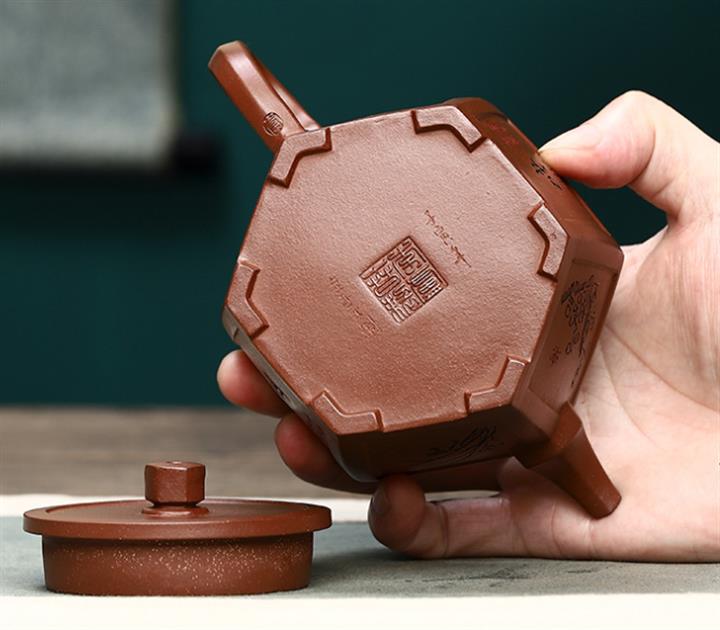手工紫砂壺證書原礦龍血砂富貴道洪pot3636