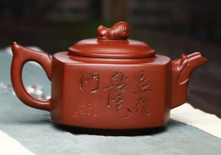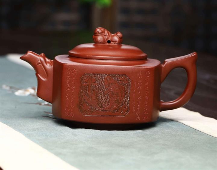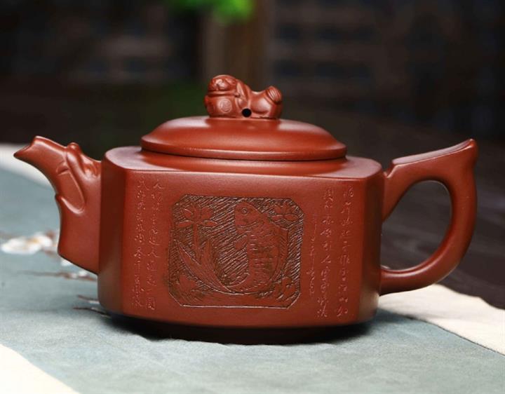 紫砂壺證書全百目龍血砂竹韻梅香手工POT3629