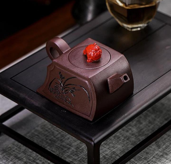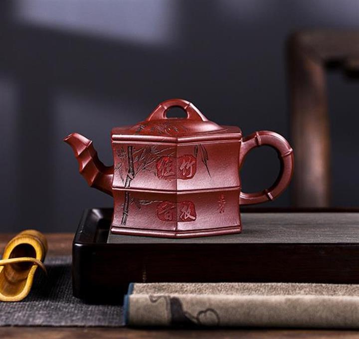 紫砂壺證書全百目龍血砂竹韻梅香手工POT3629