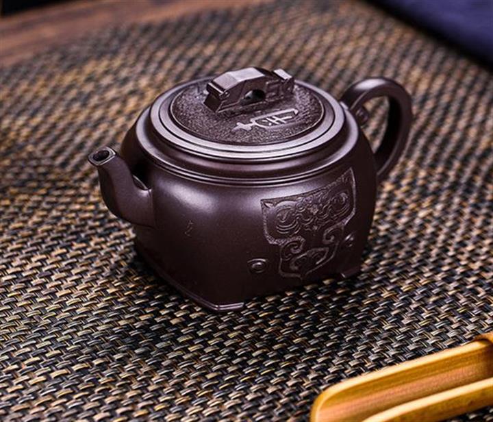 手工紫砂壺證書雙鳳賜福原礦老紫泥POT3633