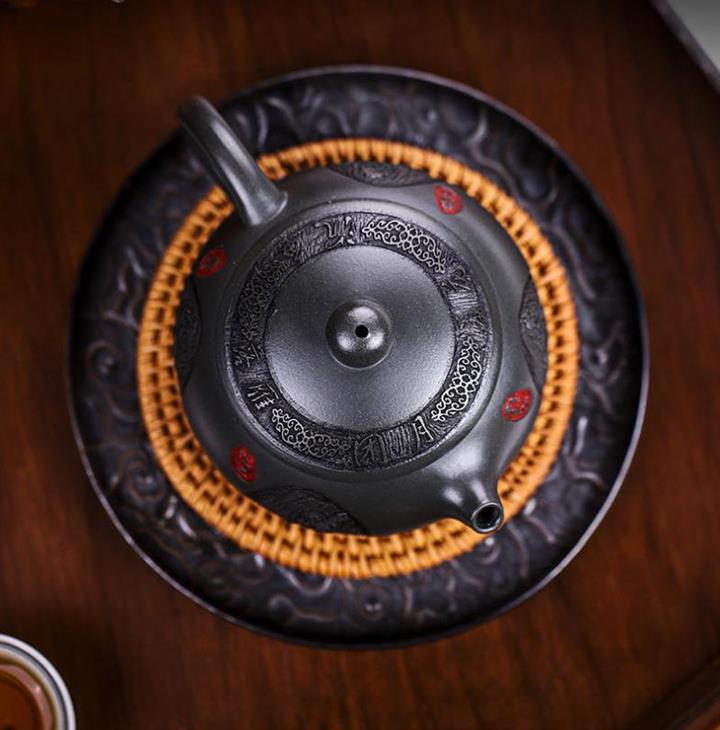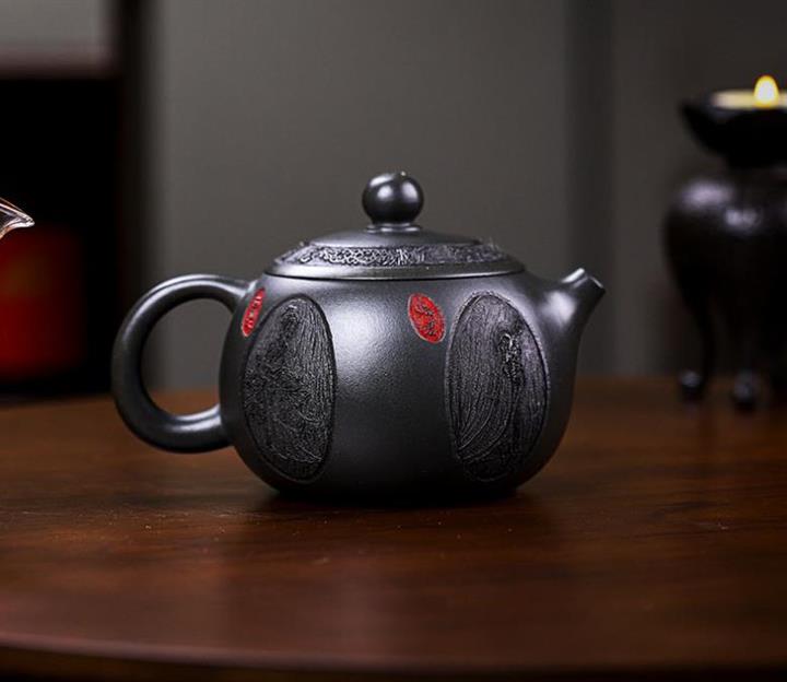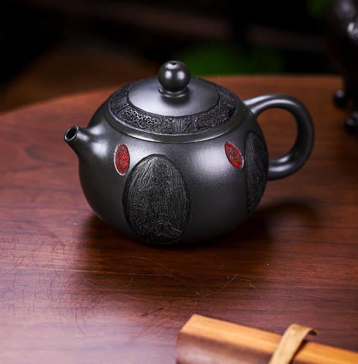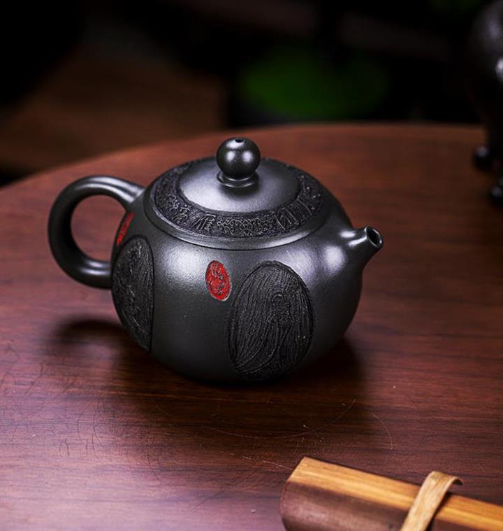 紫砂壺證書全百目龍血砂竹韻梅香手工POT3629