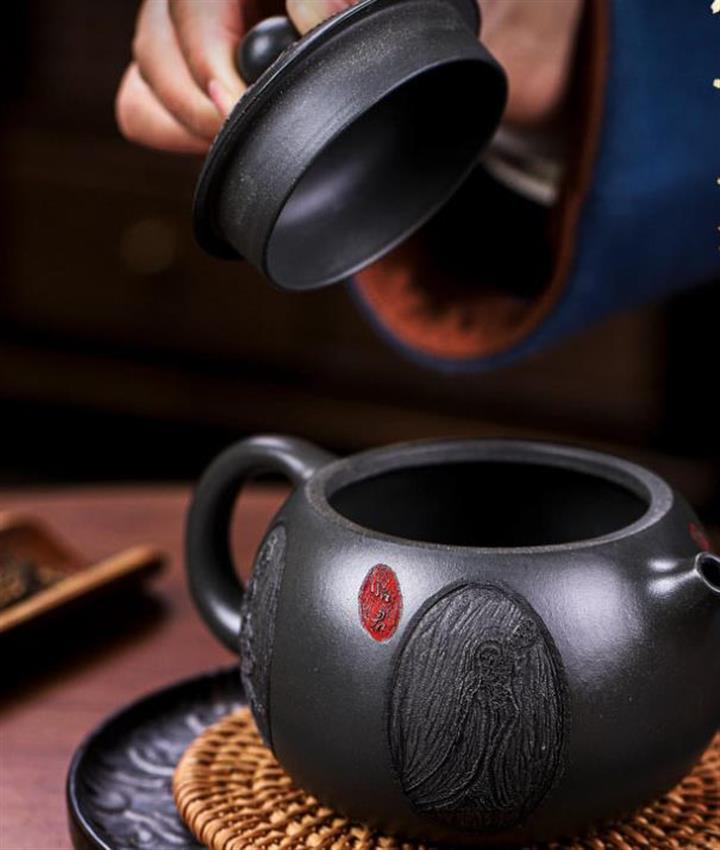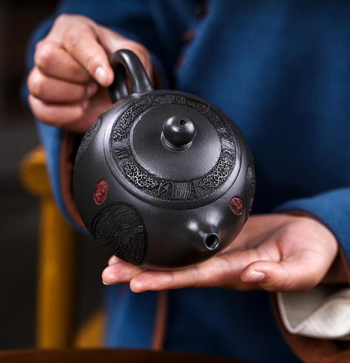 手工紫砂壺證書雙鳳賜福原礦老紫泥POT3633