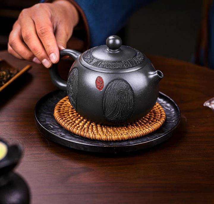 手工紫砂壺證書原礦龍血砂富貴道洪pot3636