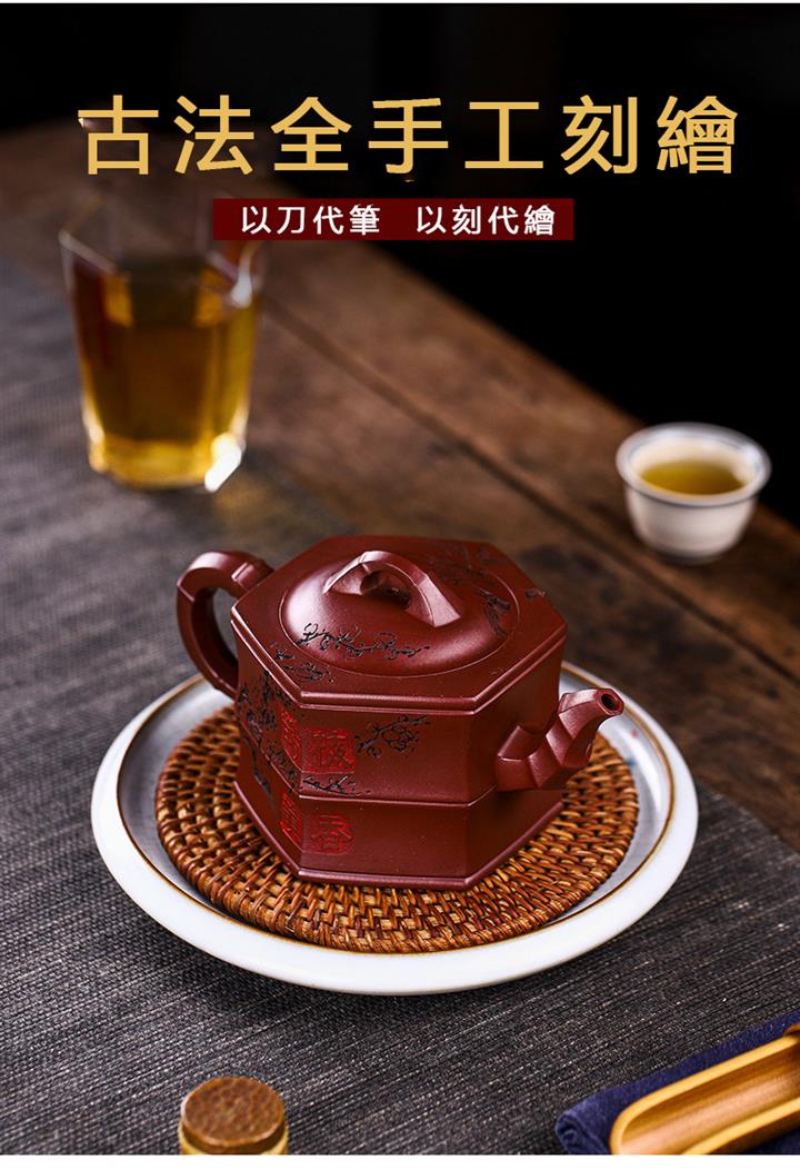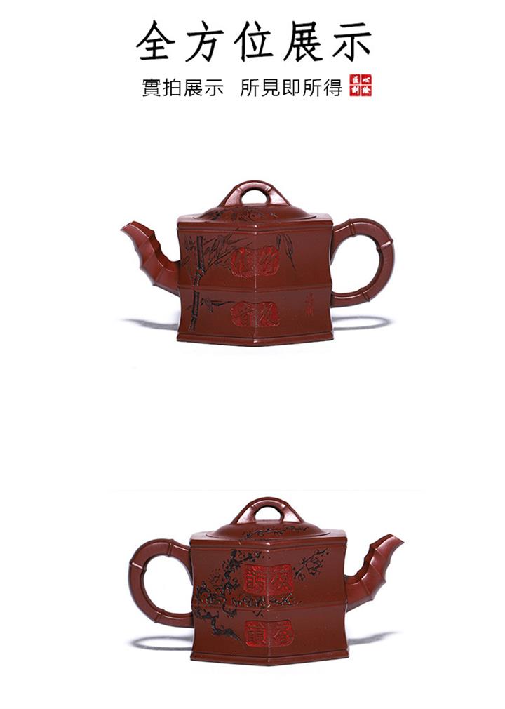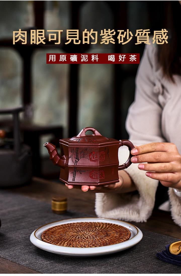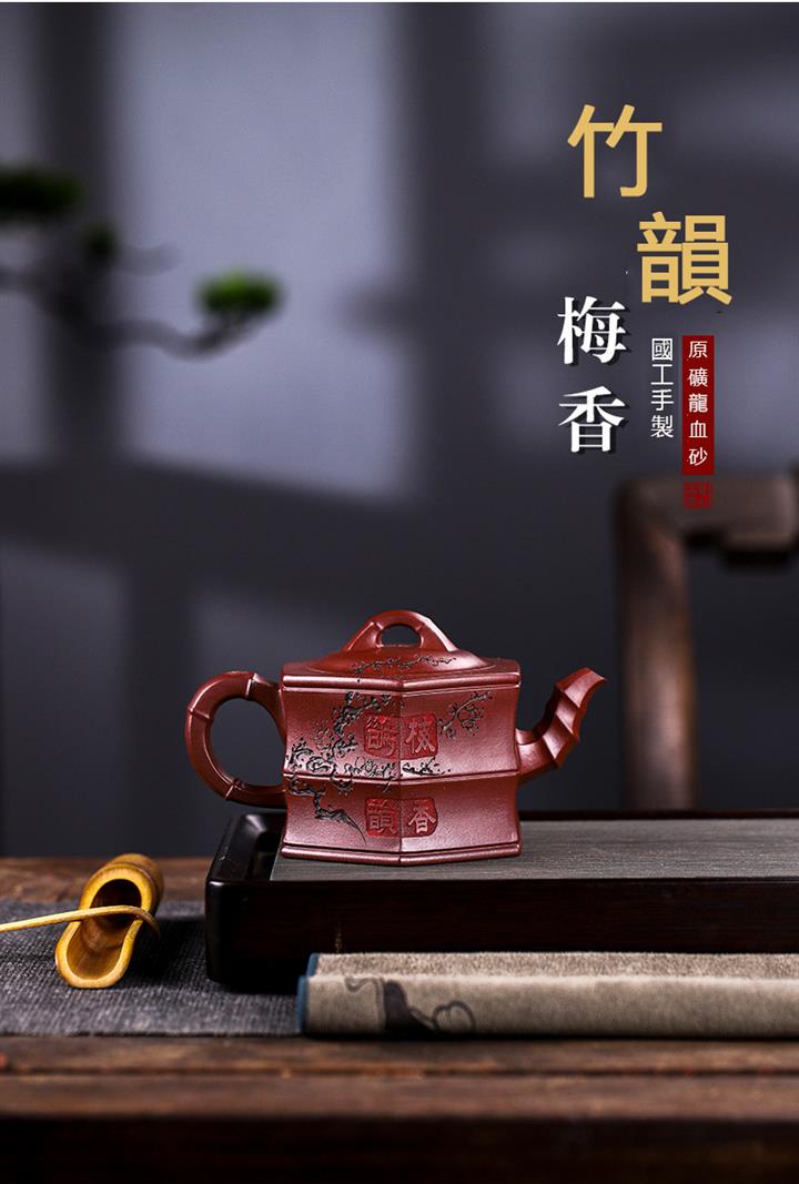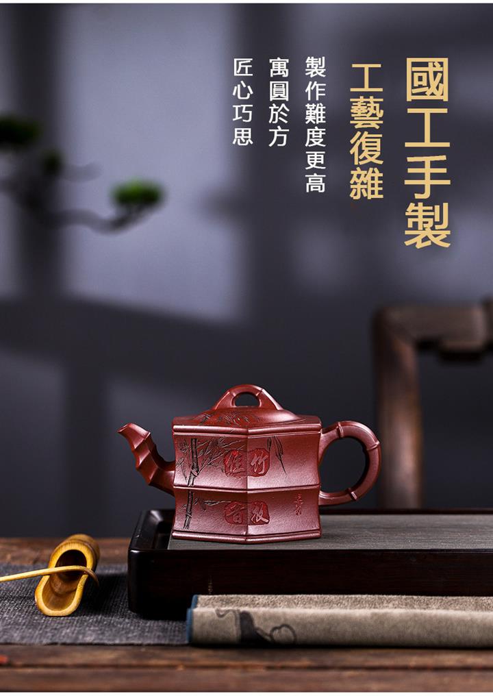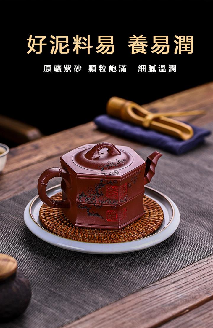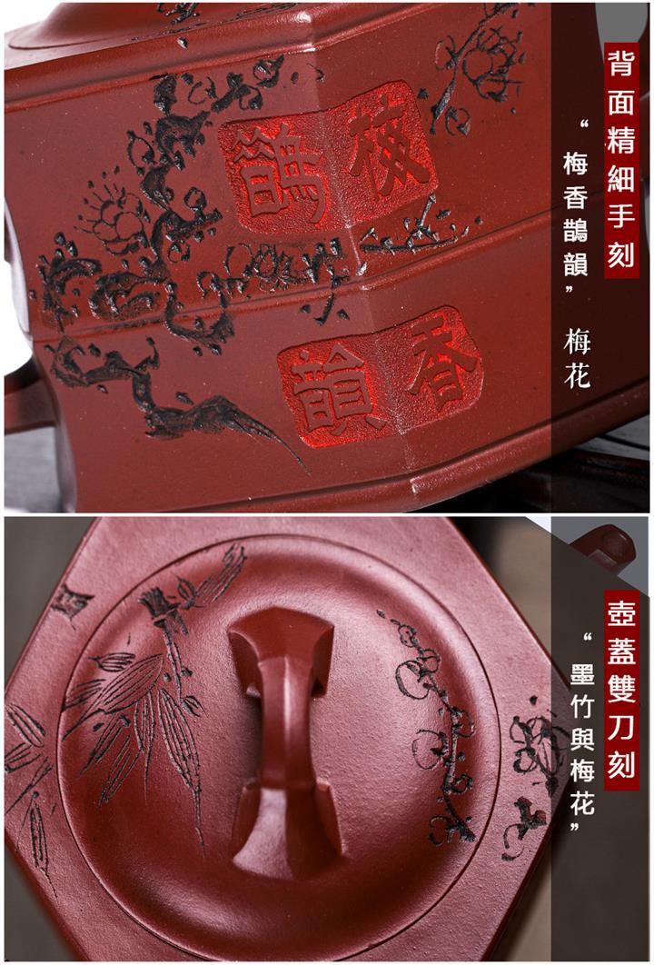 紫砂壺證書全百目龍血砂竹韻梅香手工POT3629