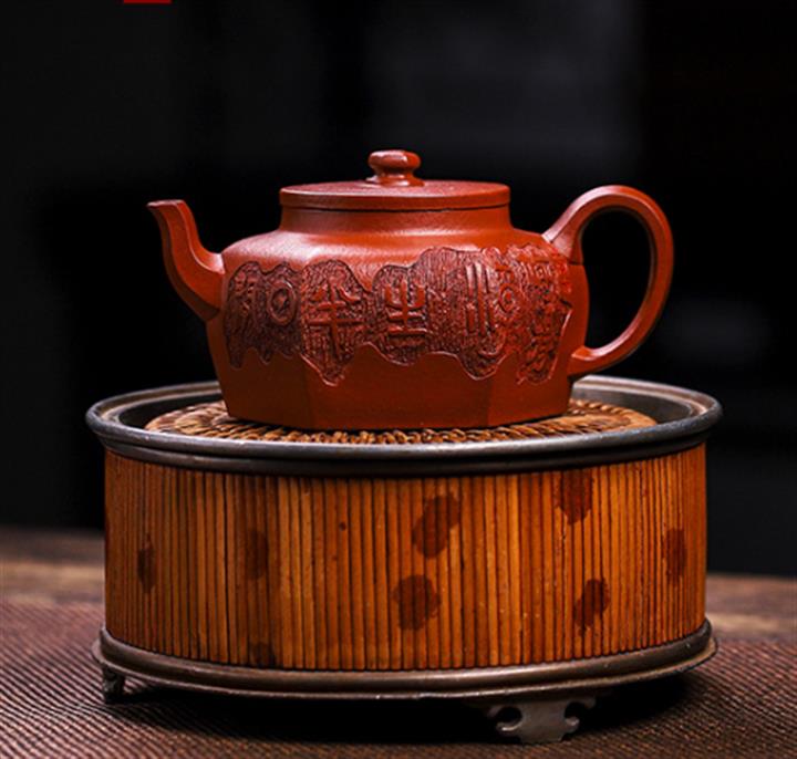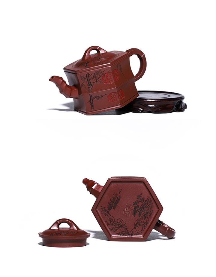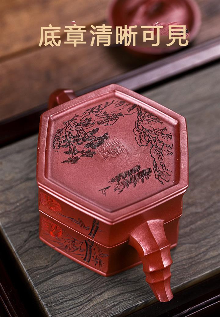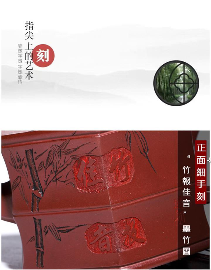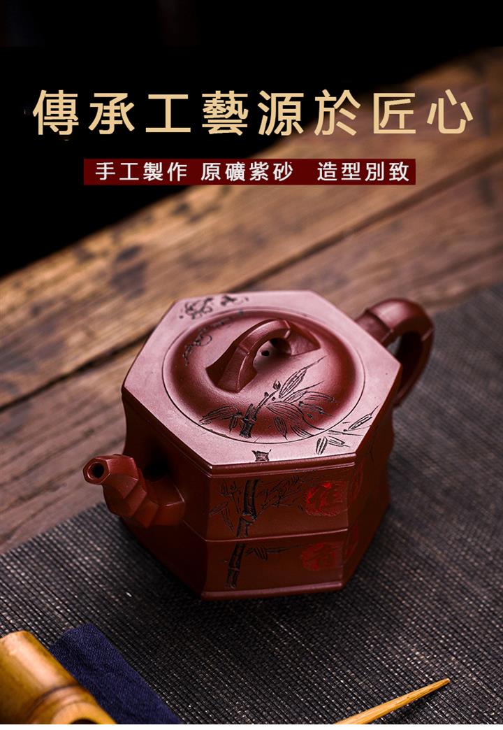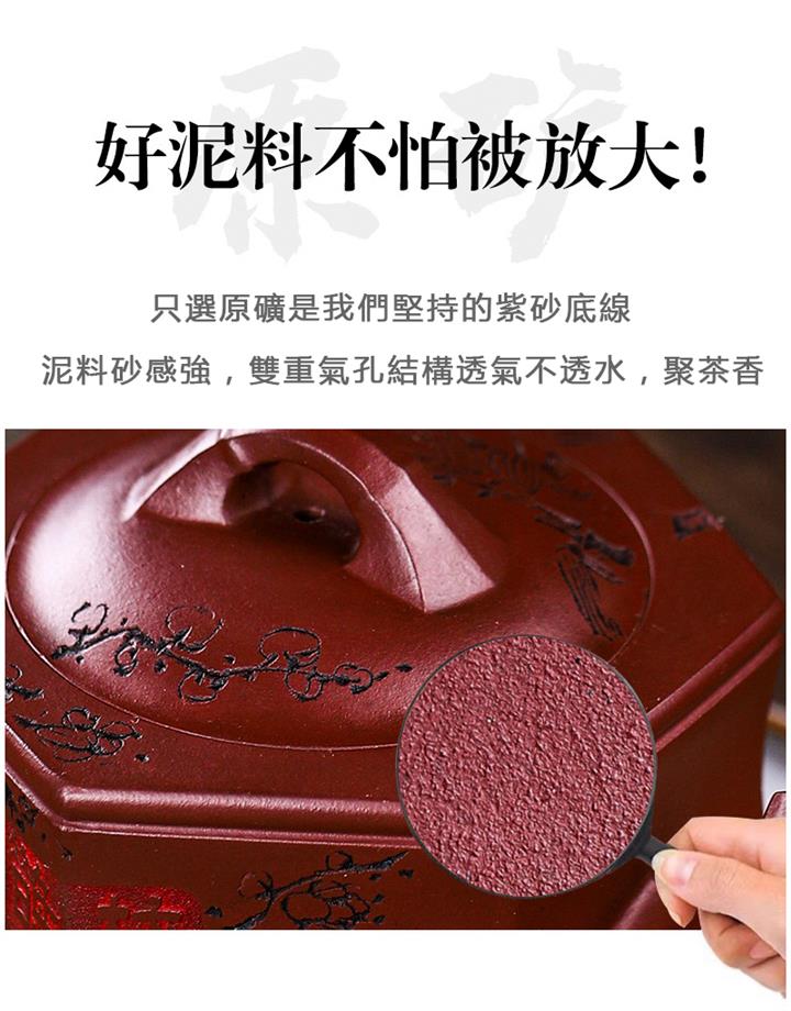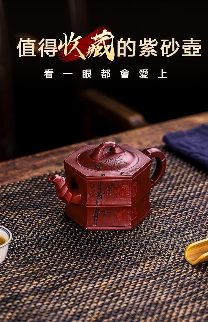紫砂壺證書全百目龍血砂竹韻梅香手工POT3629