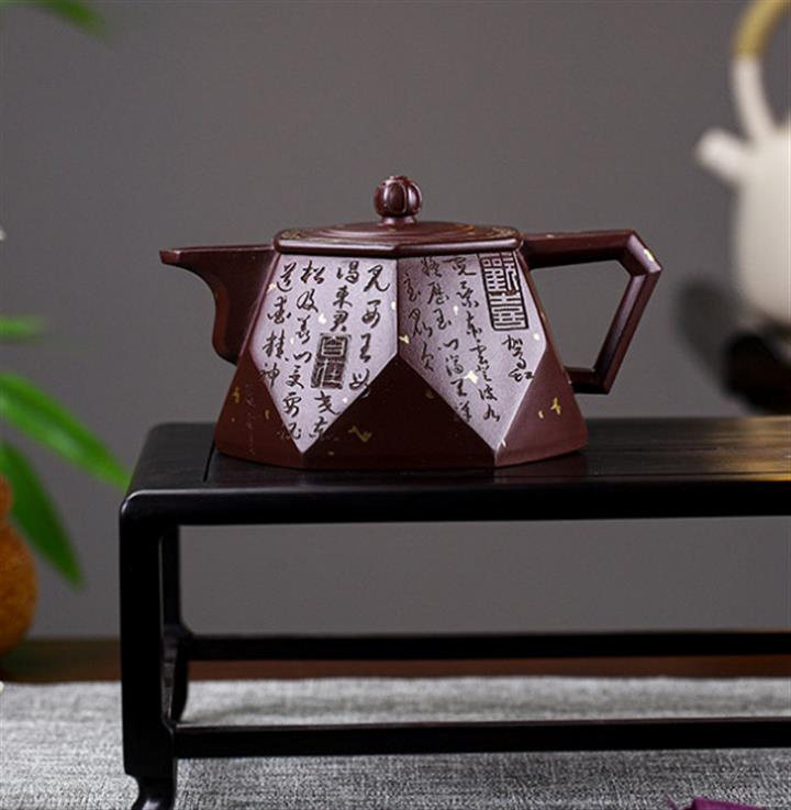 原礦小煤窯朱泥六方歡愉紫砂壺POT4766