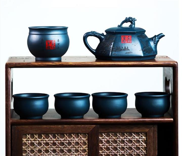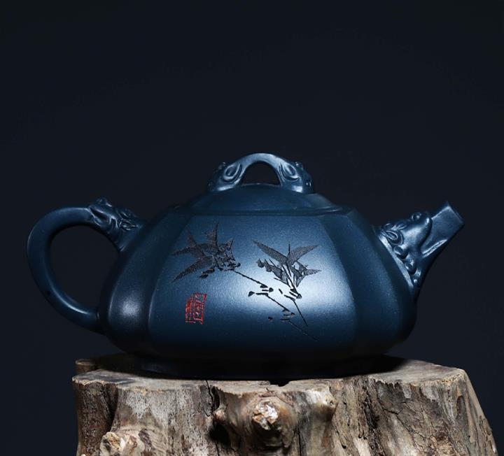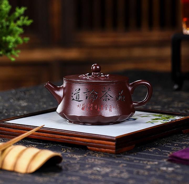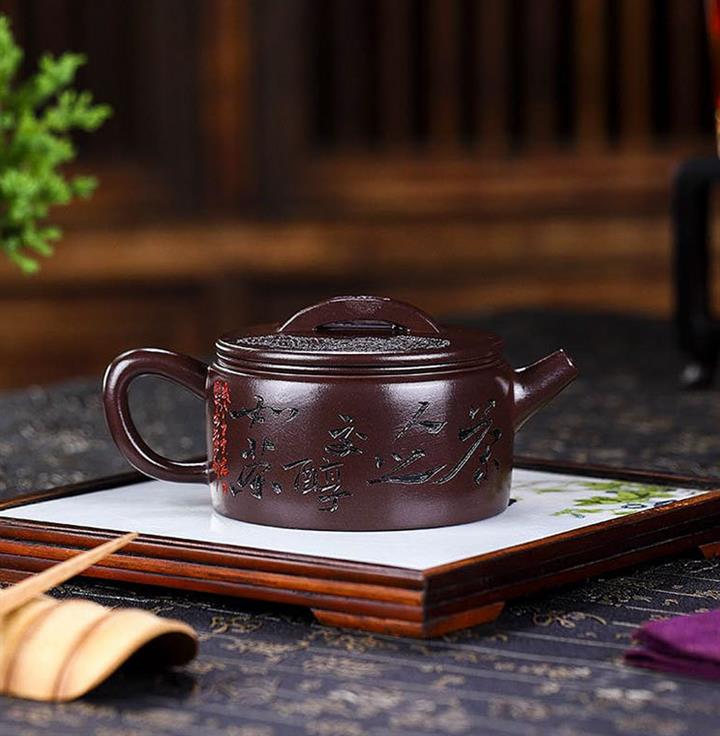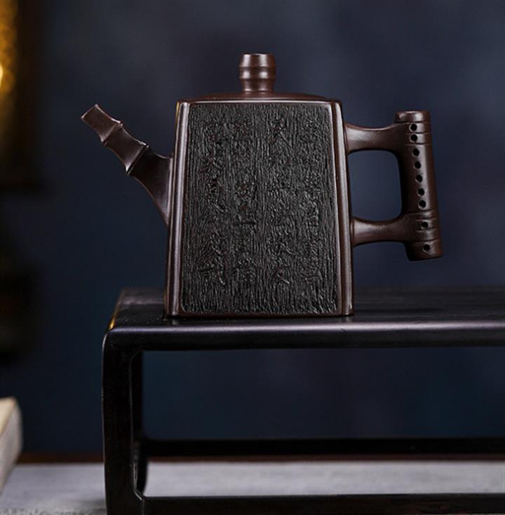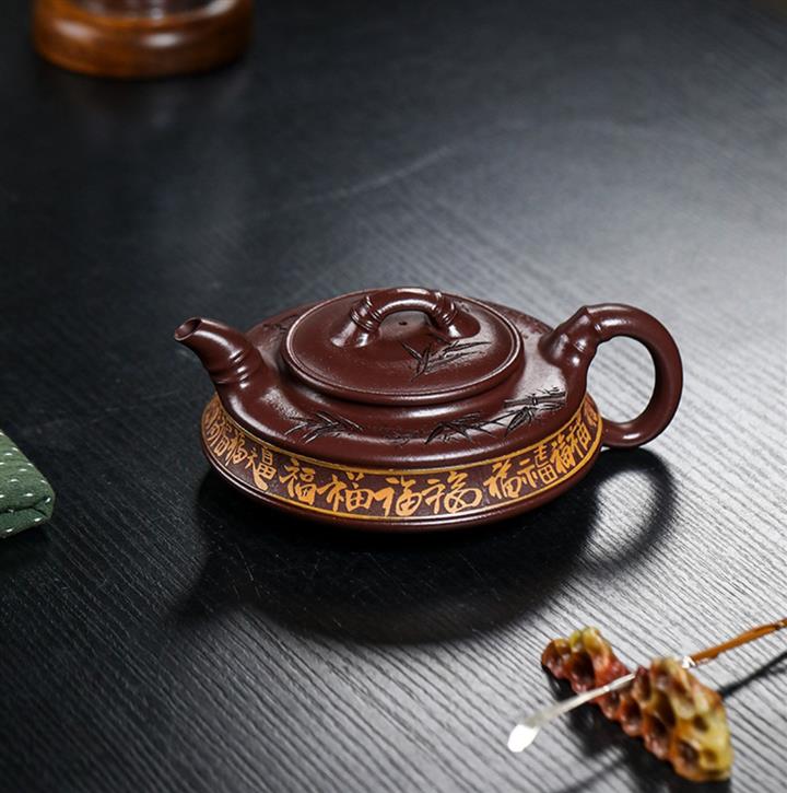家藏紫血砂竹韵百福紫砂壺POT5553